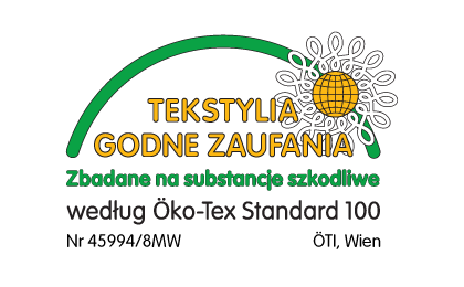Tkanina pokryciowa, wypełnienie, a nawet nici, którymi uszyty jest ten produkt posiadają certyfikat Öko-Tex Standard 100 poświadczający, iż każdy z tych surowców spełnia najściślejsze wymagania humanoekologiczne dotyczące produktów dla dzieci.